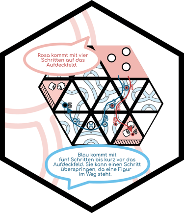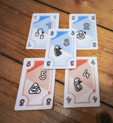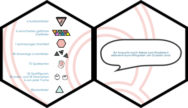 Meine Aufgaben lagen im Design der Spielelemente, von den Karten bis zum Plättchendesign und der Anleitung. Mit den Komplementärfarben lachs und blau entstand dabei ein klares, rundes Design, das schnell erkennen lässt, welche Elemente welche Bedeutung haben und so für alle Altersgruppen leicht zugnglich ist.