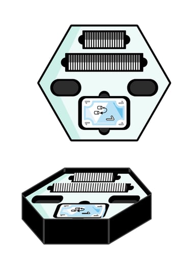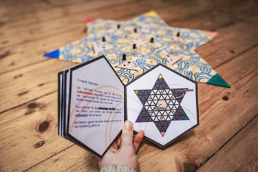 Da wir während der Pandemie an unterschiedlichen Orten wohnten, lagen meine Aufgaben vor allem in der Gestaltung der Spielelemente, während meine Kommilitonin den Bau des Prototypen selbst übernahm. Ich arbeitete dabei mit den Programmen Affinity Publisher, Affinity Designer und Affinity Photo.